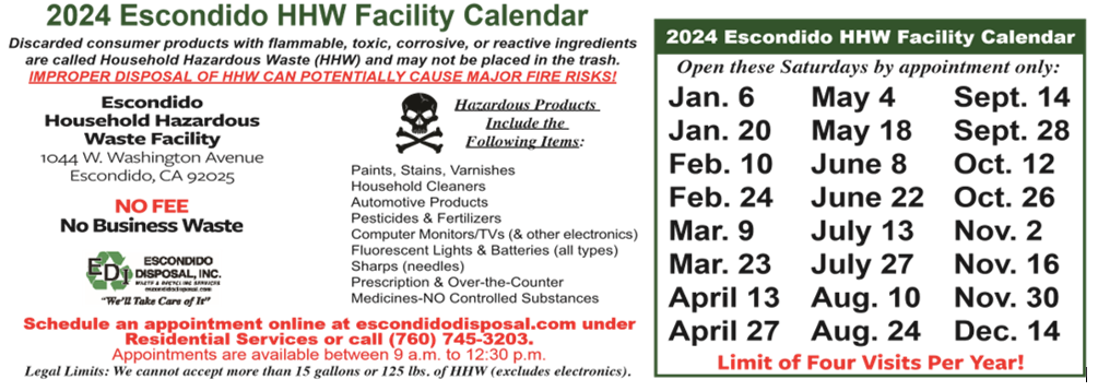 There is one catch. Certified center managers will not accept used motor oil that has been contaminated with other fluids such as antifreeze, solvents, gasoline, or water. So please, don’t mix your used oil with anything. If it is mixed with anything else, you could bring it to one of our Saturday Household Hazardous Waste Collection Events (PNG). They are free to Escondido residents!