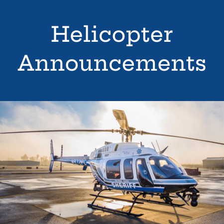Sheriff's ASTREA (helicopter) uses a loudspeaker when searching for a missing person or suspect. Announcements are also made during critical incidents such as a SWAT standoff, disasters, crowd management events or to give people a shelter in place notification.